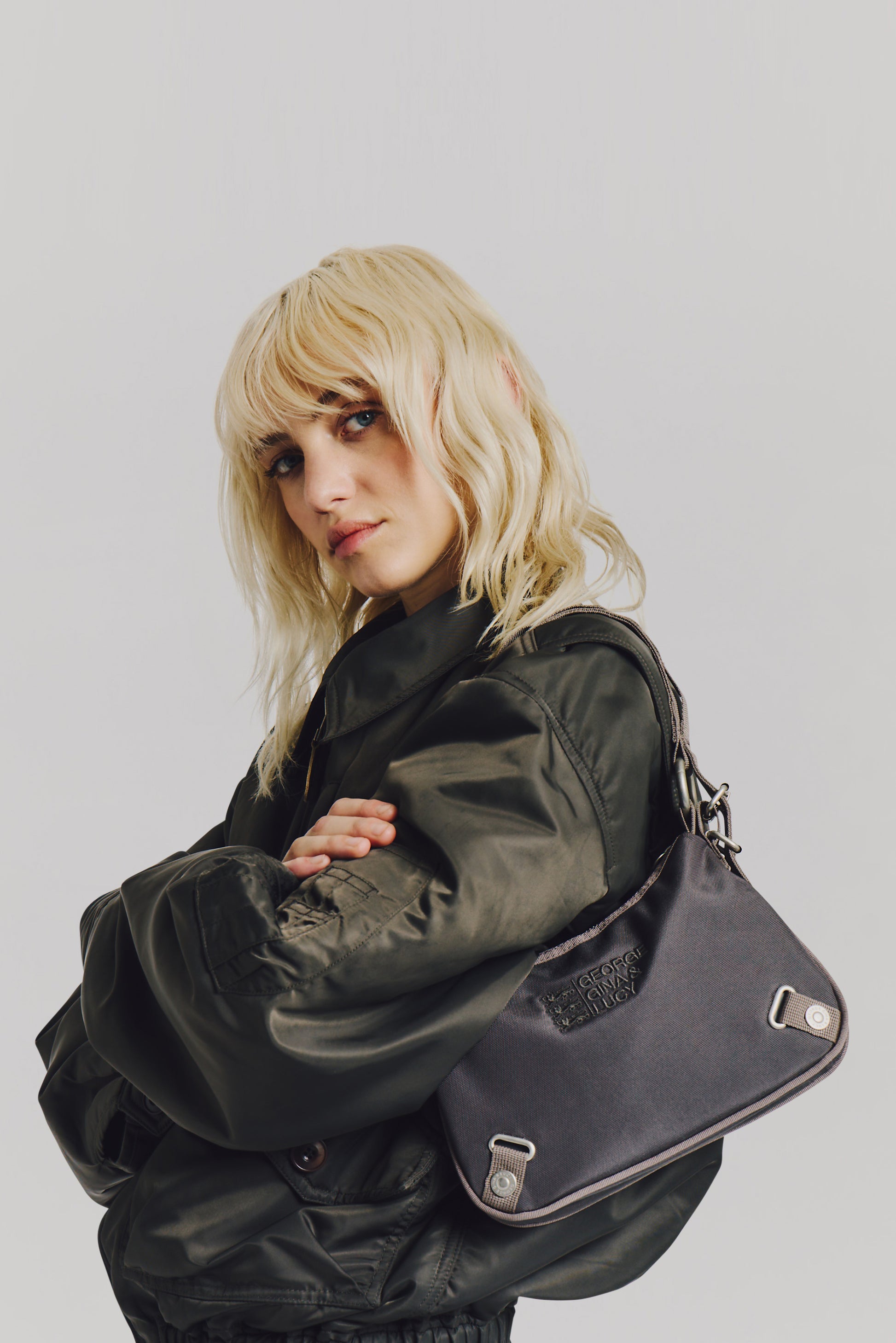 Handbag made of GG&L nylon with a color-coordinated and embroidered logo. Adjustable and removable shoulder strap not included.
