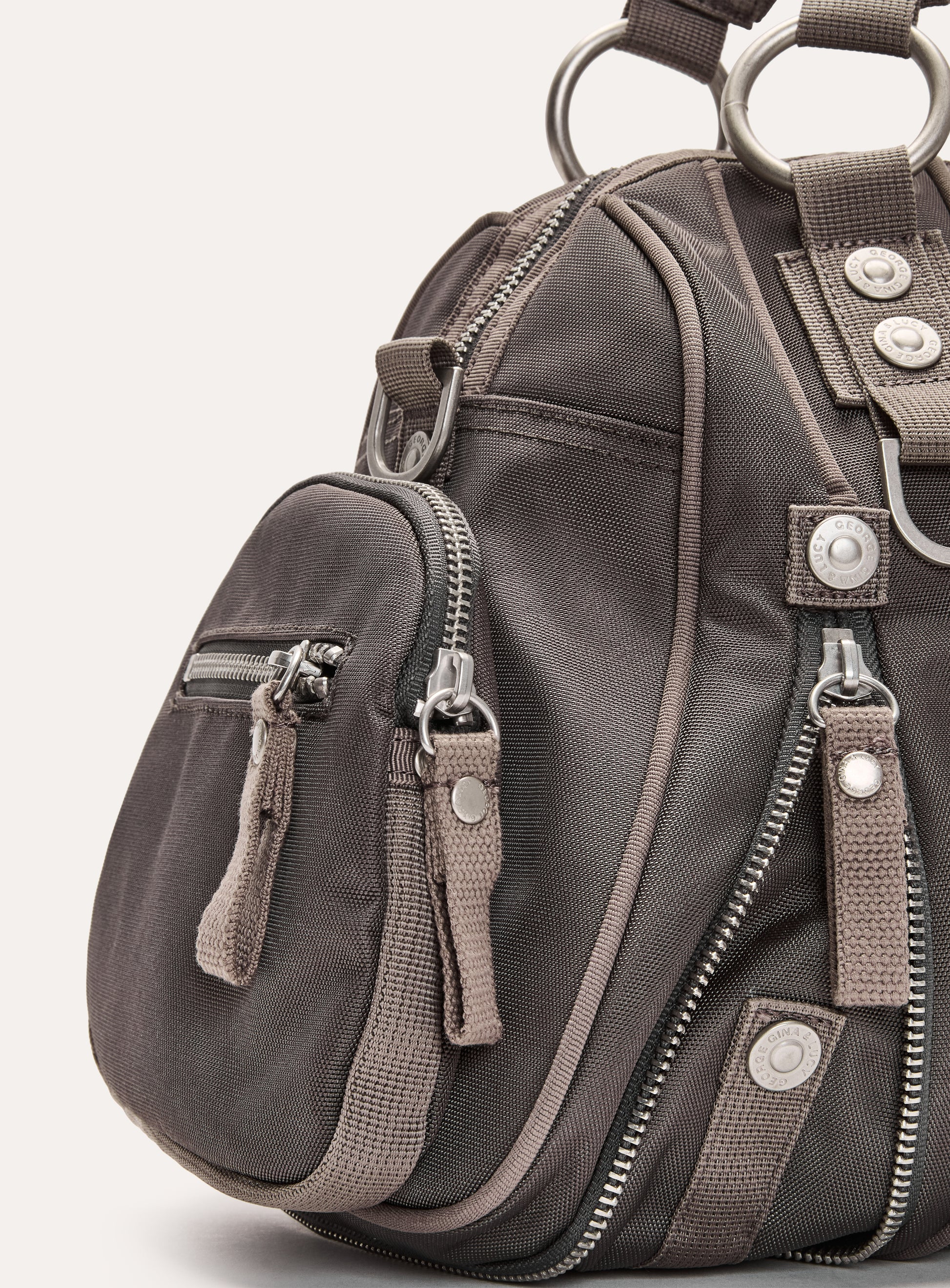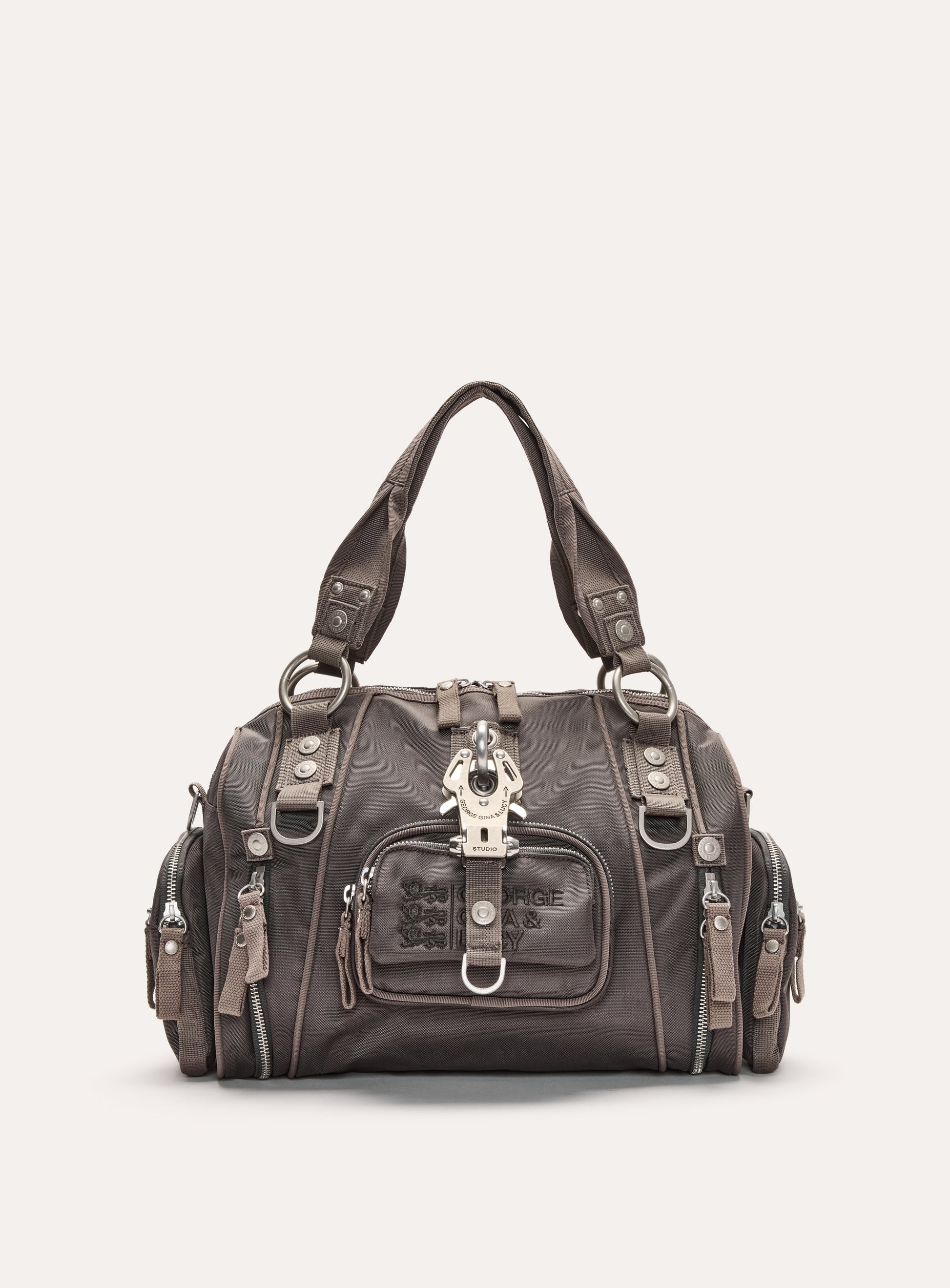 Handtasche aus GG&L Nylon mit farblich abgestimmtem, gesticktem Logo und neu designtem GG&L Stahlschloss. Die Tasche ist mit zahlreichen Hardwaredetails versehen und kommt mit einem größenverstellbaren und abnehmbaren Schulterriemen. Vereint Funktionalität und Mode.